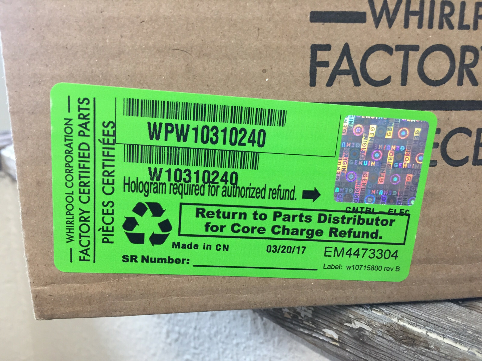 The right part number is WPW10310240. Other replacement parts can also be used with your appliance. Read more Refrigerator WPW10310240 Main Control Board part details, and ..
